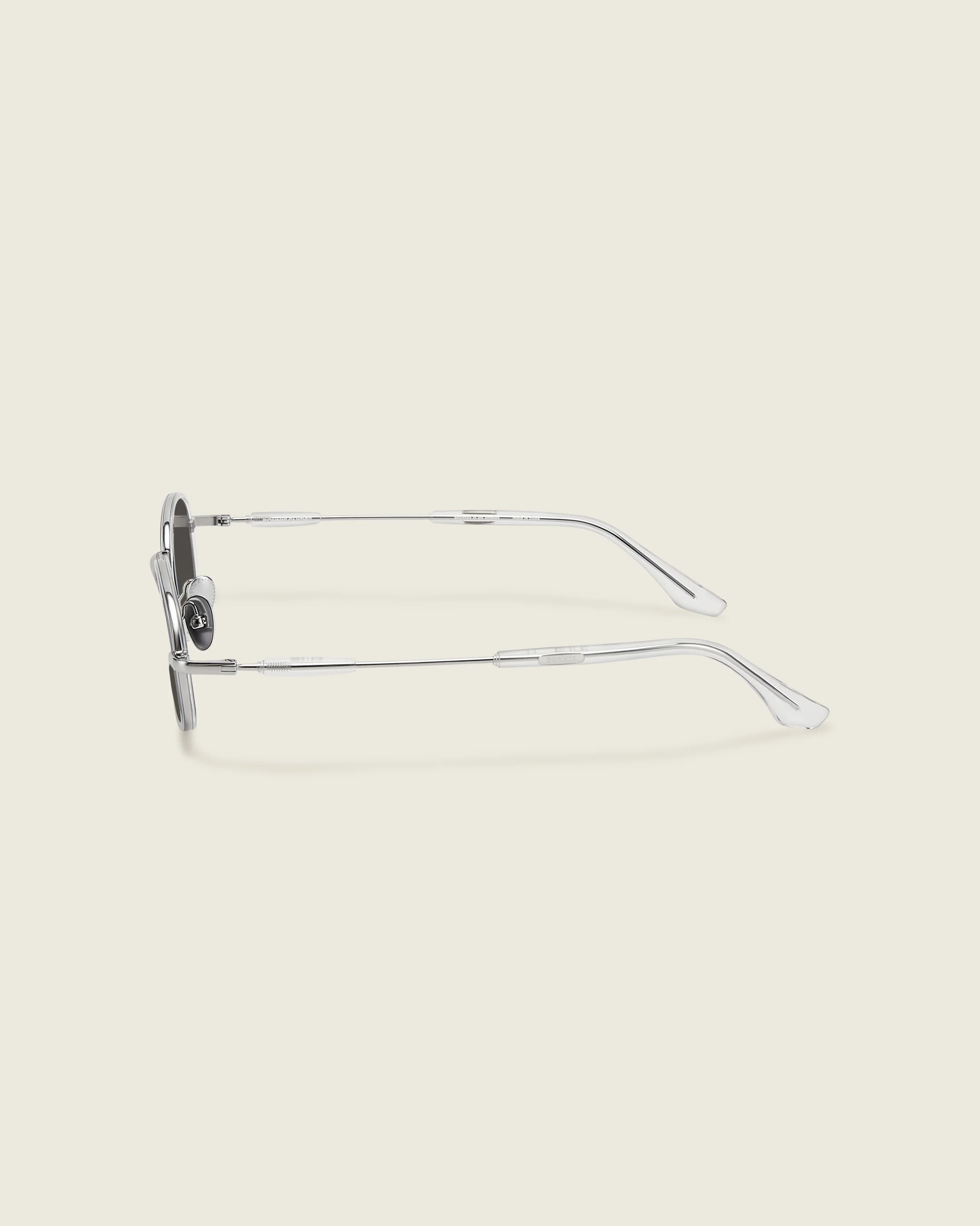A sleek, round metal frame. Arm temples are made with a combination of durable, lightweight acetate and stainless steel. Features adjustable titanium nose pads, thick ear tips, and acetate-encased lenses.