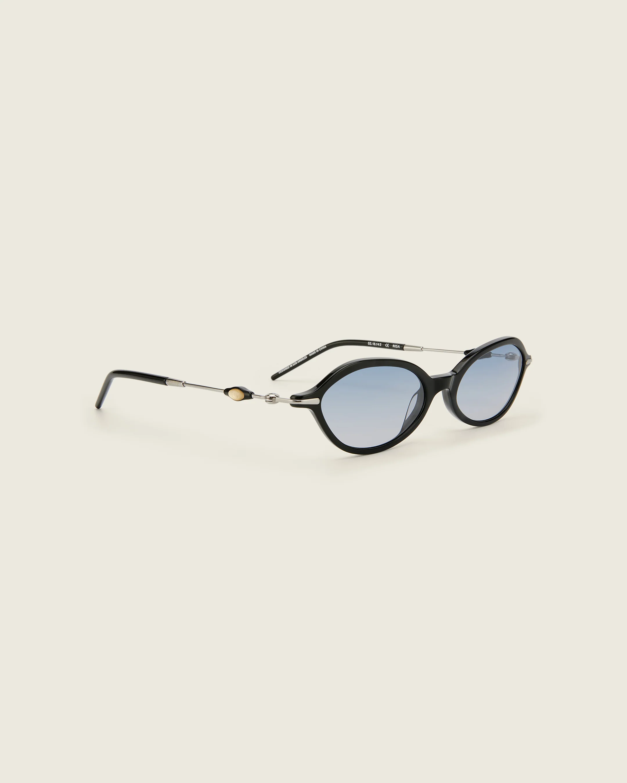 Acetate frames with a distinct silhouette, blending an oval shape with subtle cat-eye elements. Features a sculpted bridge and titanium temples with an exploding heart acetate bead.Â