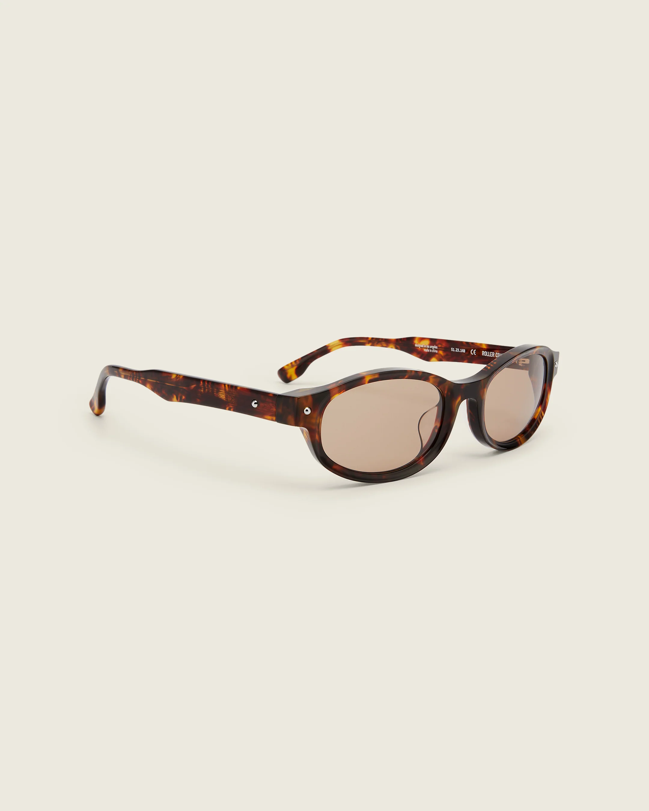 Oval shaped, slim silhouette acetate frames paired with thin straight temples and round, metal detailing.