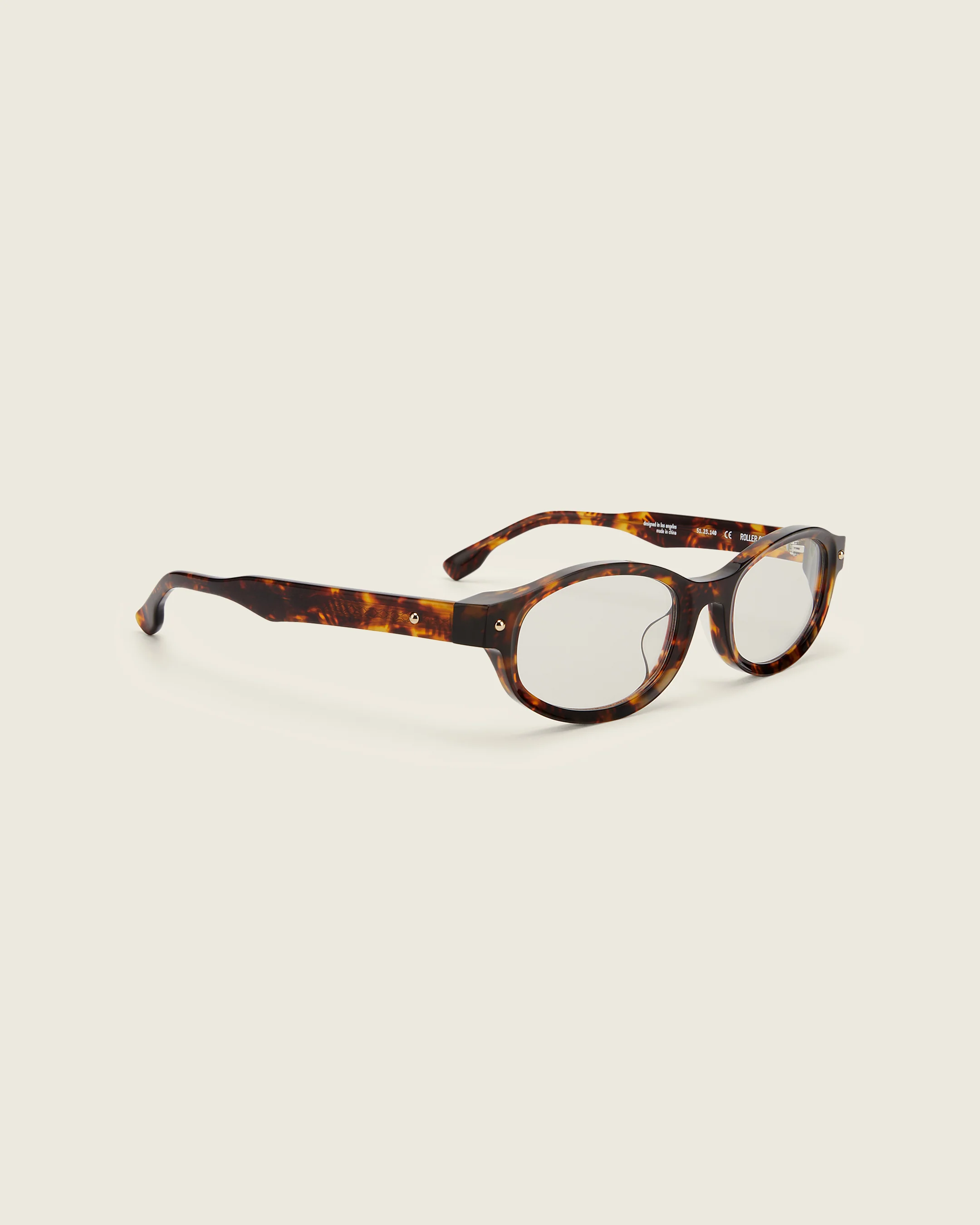 Oval shaped, slim silhouette acetate frames paired with thin straight temples and round, metal detailing.